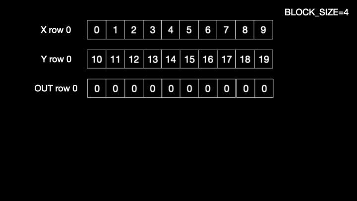 For this implementation since the BLOCK_SIZE < N we will have to run a loop to keep loading BLOCK_SIZE worth of data and compute the addition until all elements in the row are read. Here’s the code: